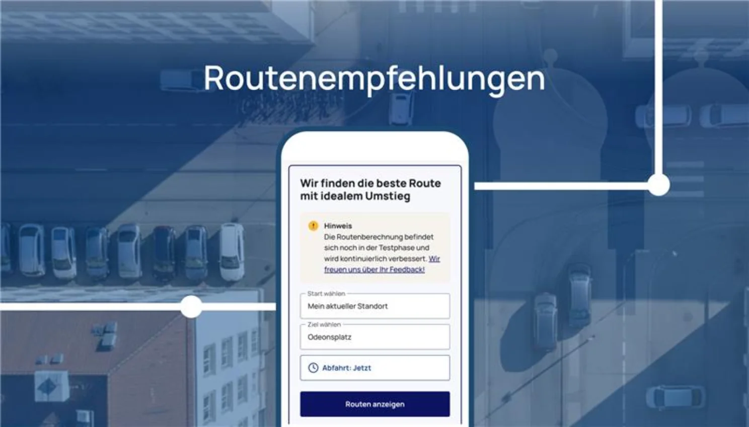 Bereits heute kann die „Routenempfehlung“ in einer Testphase auf der HandyParken München Webseite genutzt werden. Damit erhalten Nutzer*innen künftig eine intelligente Übersicht über verschiedene Möglichkeiten, ihr Ziel in München schnell und komfortabel zu erreichen.
