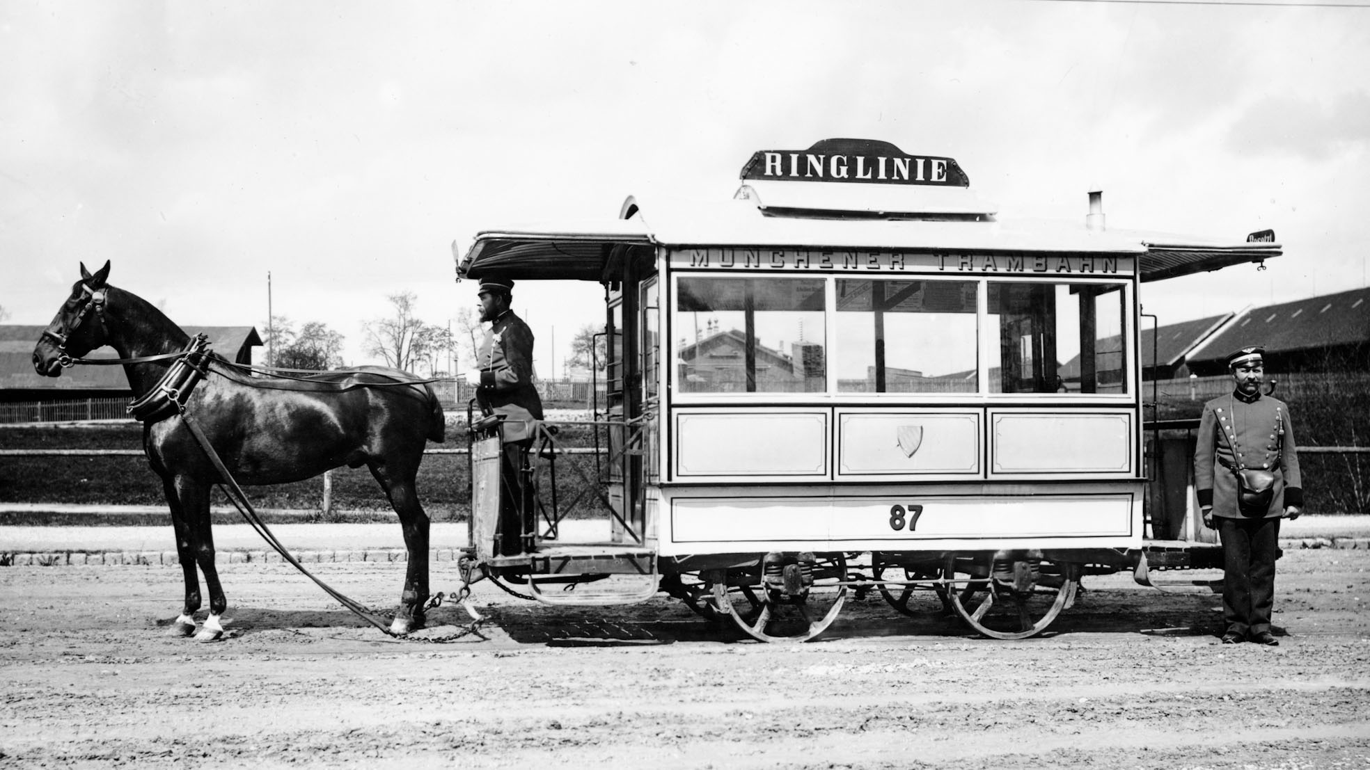 Am 21. Oktober 1876 nahm die Münchner Tram mit einer Pferdestärke Fahrt auf: Rösser zogen die ersten sechs Wagen auf Schienen, auf einer 2,8 Kilometer langen Strecke ging es gemächlich von Ost nach West – vom Promenadeplatz über Karlsplatz und Centralbahnhof bis zur Stadtgrenze in der Nymphenburger Straße. Eine Premiere, die die Mobilität Münchens nachhaltig verändern sollte.
