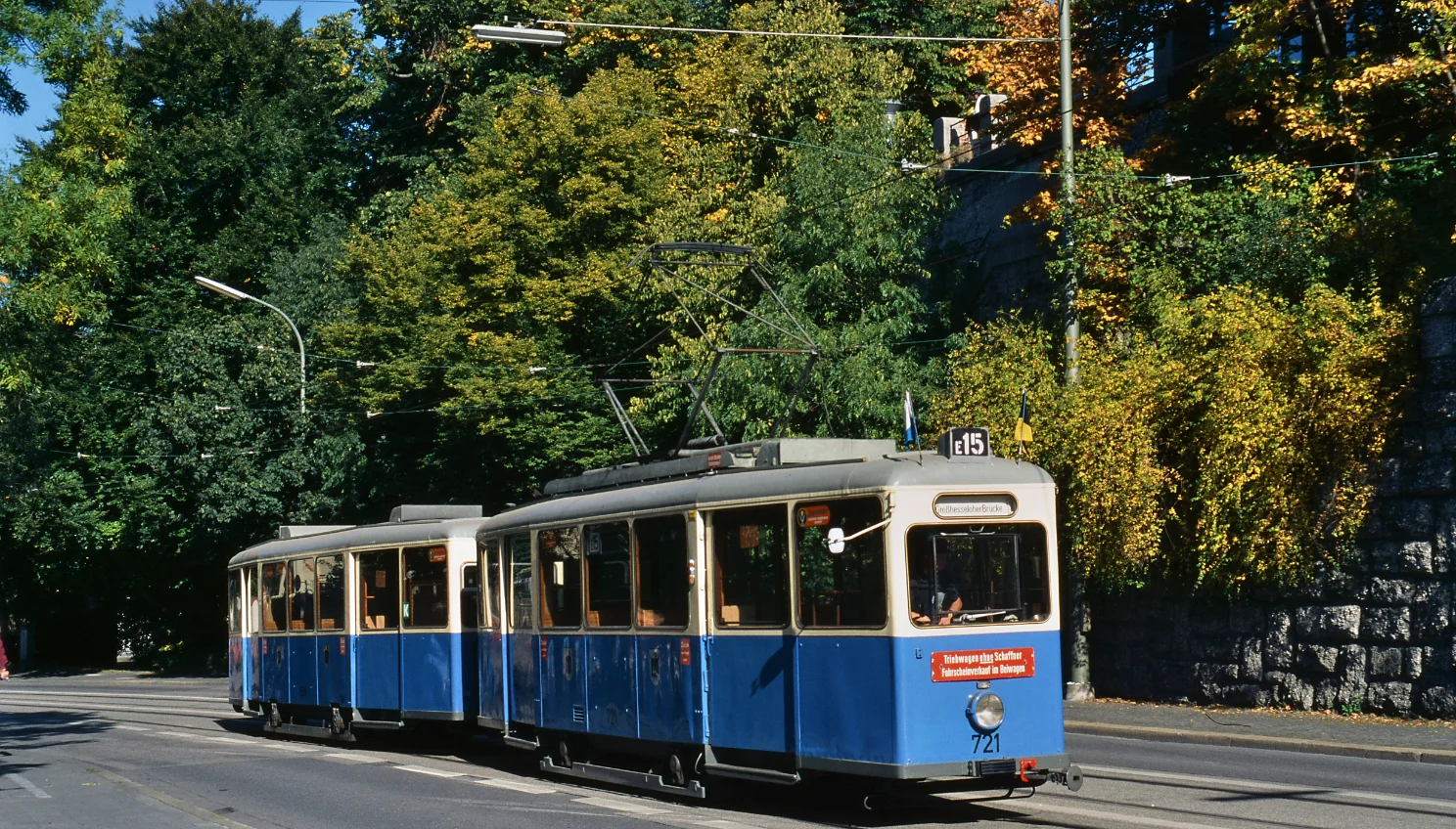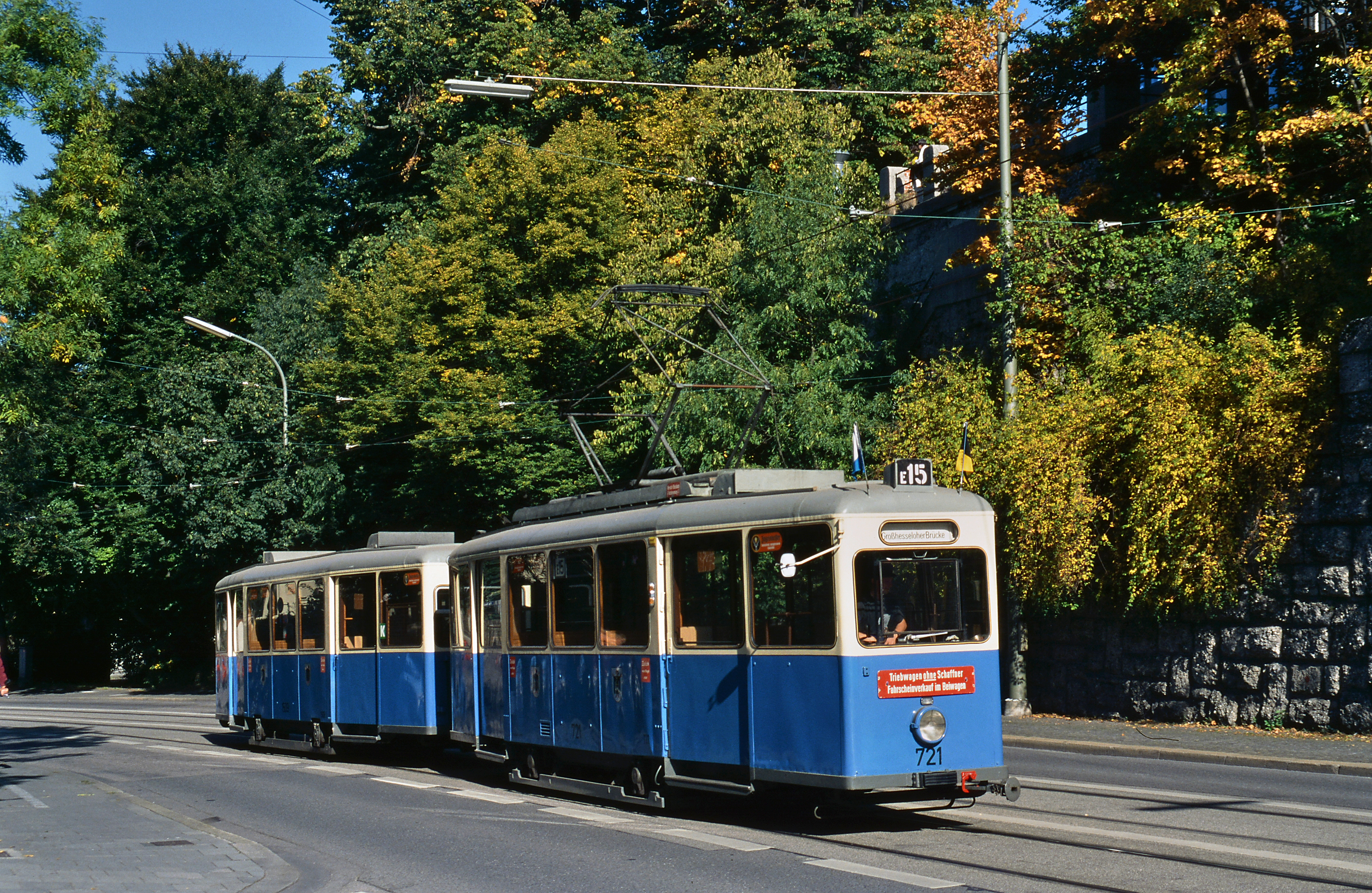 So hießen die 41 formschönen Vierachser, die 1929/30 geliefert wurden. Sie waren weiß-blau lackiert und mit grünen Sonnen-schutzvorhängen sowie Ablagetischchen unter den Fenstern versehen. Die letzten F-Wagen wurden 1972 abgestellt, Wagen 642 steht im Deutschen Museum.