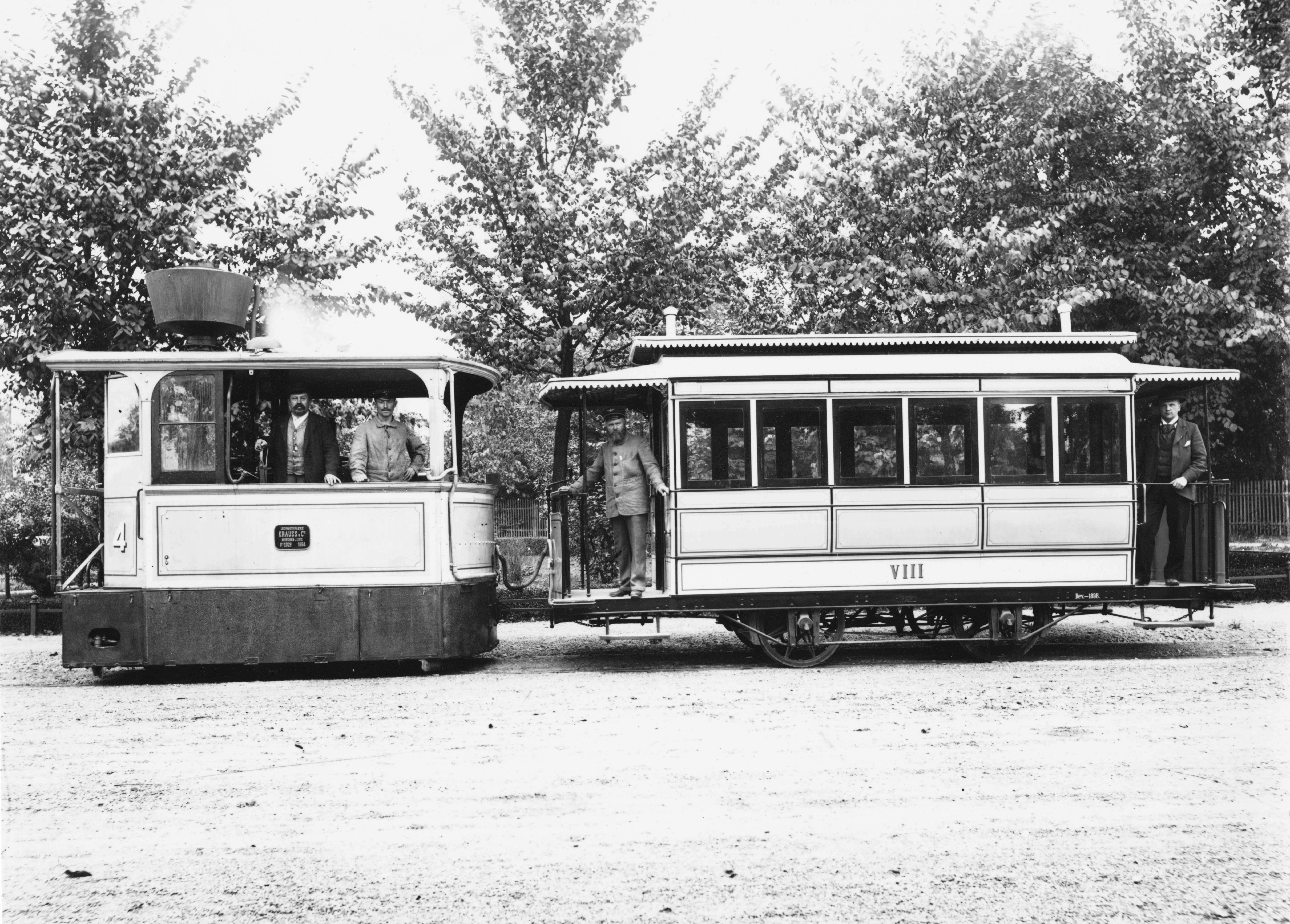 Die einzige dampfbetriebene Linie führte ab 1883 vom Zentrum nach Nymphenburg, wo sich seit 1890 der Volksgarten befand. 6 Dampfloks und 33 Wagen umfasste der vor allem an Wochenenden ausgelastete Fuhrpark. 1900 ersetzte die Elektrische die Linie.