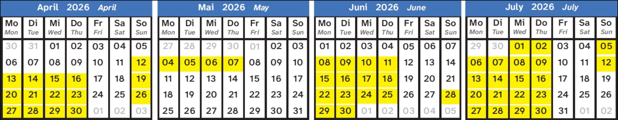 In der Zeit von Sonntag, 12. April, bis Donnerstag, 30. Juli, fahren beide U-Bahnlinien in den Nächten vor Werktagen vorzeitig bereits ab 22:30 Uhr im 20-Minuten-Takt. Wegen parallel stattfindender Arbeiten am Innsbrucker Ring finden an vier Wochen im Mai und Juni keine Arbeiten statt.