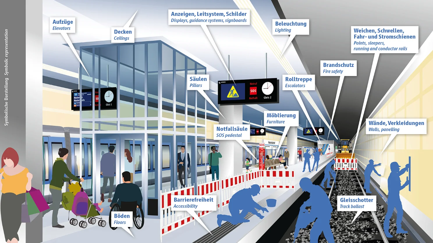 Wichtig: Es handelt sich hierbei um einen Beispiel-Bahnhof. Nicht alle Stationen sind von allen Maßnahmen betroffen.