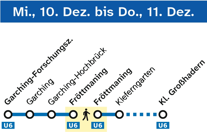 • Garching-Forschungszentrum <> Fröttmaning (20-Minuten-Takt)