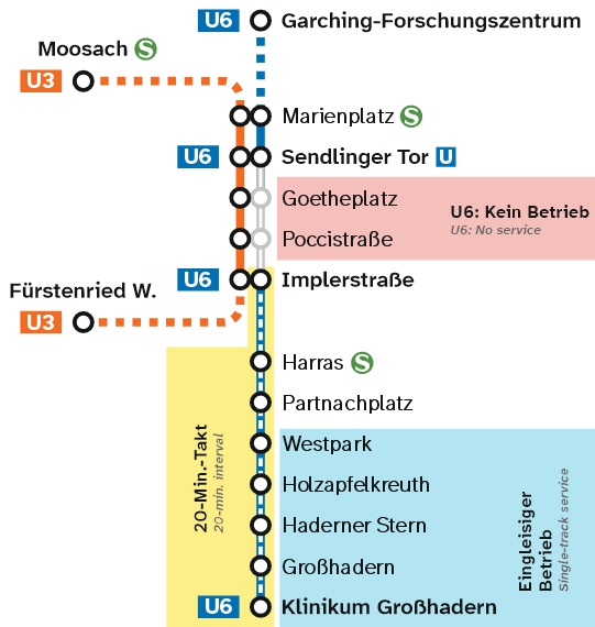 Zwischen Sendlinger Tor und Implerstraße nutzen Sie bitte die regulär fahrende U6.