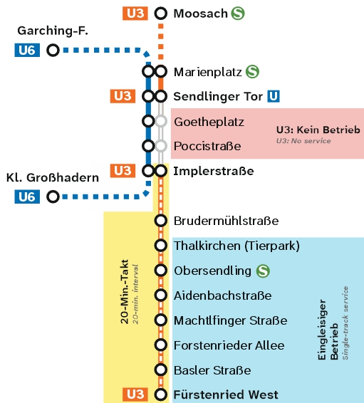 Zwischen Sendlinger Tor und Implerstraße nutzen Sie bitte die regulär fahrende U3.