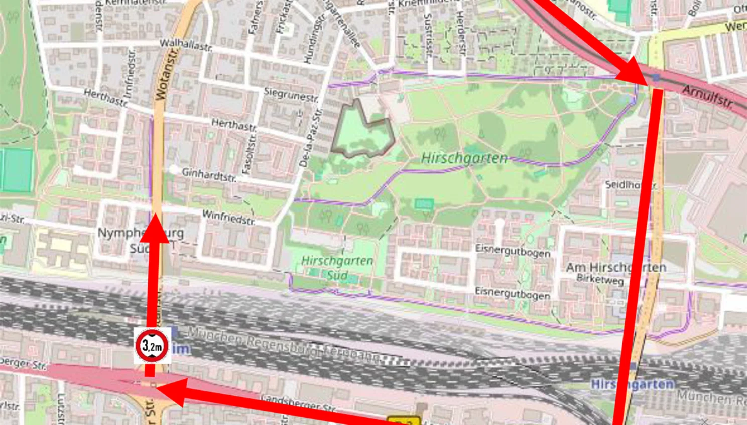 Die Ein- und Ausfahrt aus der östlichen Hirschgartenallee in die Wotanstraße ist seit 29. Januar für vsl. sechs Wochen gesperrt. Die Fußgängerampel über die Wotanstraße wird in dieser Zeit um etwa 20 Meter nach Westen verschoben.