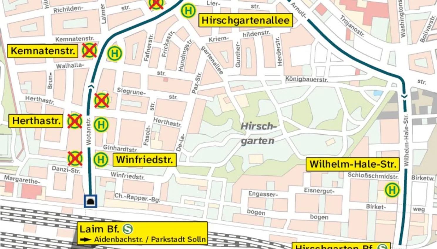 Die Buslinien Richtung Laim werden über die Friedenheimer Brücke umgeleitet. Der von Norden kommende PKW-Verkehr wird – analog zu den Bussen – vom Romanplatz durch die Arnulfstraße, über die Friedenheimer Brücke und Landsberger Straße gelenkt und kann bei Bedarf von dort Richtung Norden durch die Laimer Unterführung fahren.