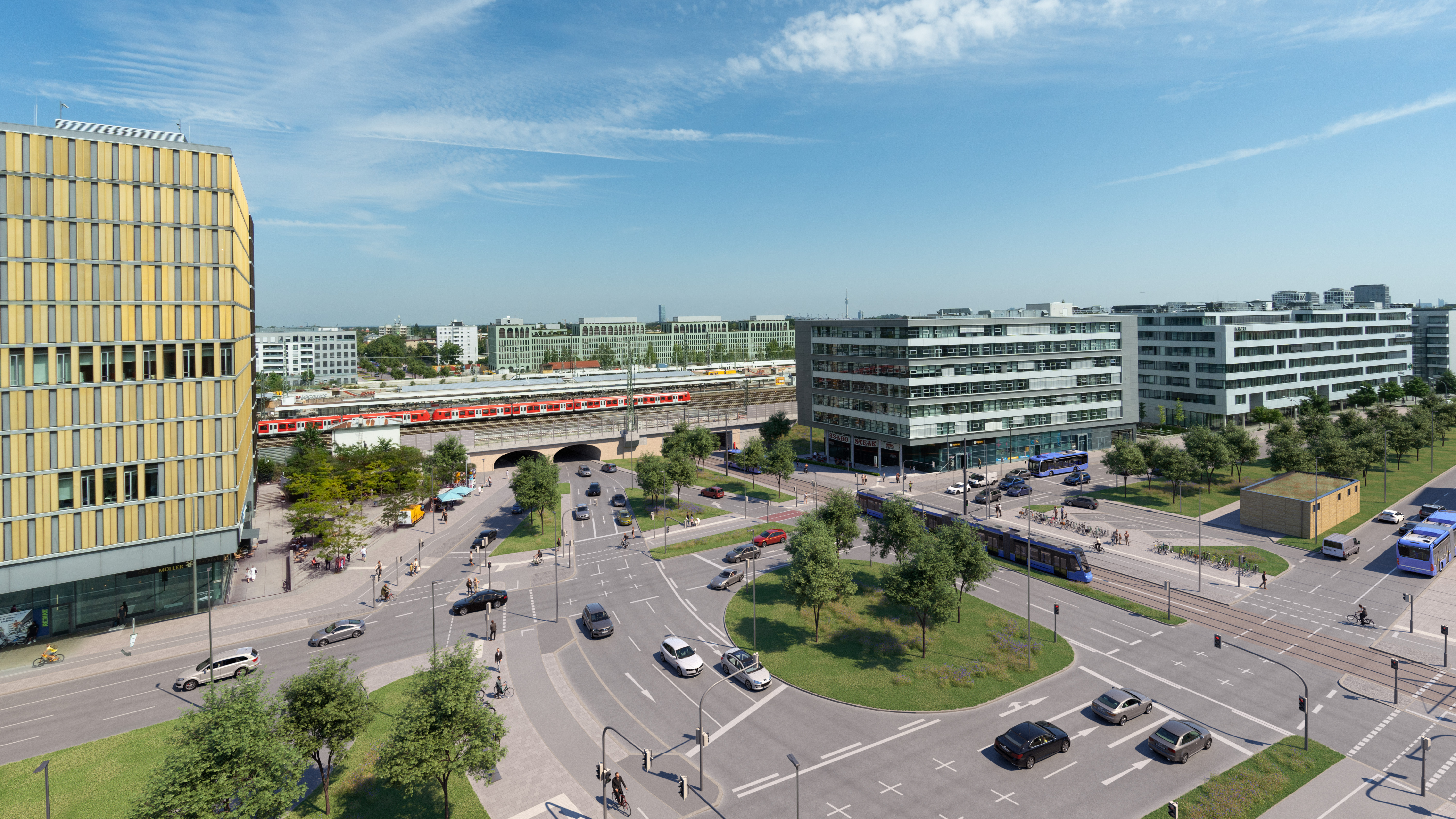 - Die P+R-Anlage an der Aidenbachstraße wird abgerissen und mit höherer Kapazität neu gebaut. Dabei entsteht auf dem Dach auch ein Sportplatz für die benachbarten Schulen. Ins "Erdgeschoss" kommt ein neuer, großer Bahnhof für Busse und Trambahnen.